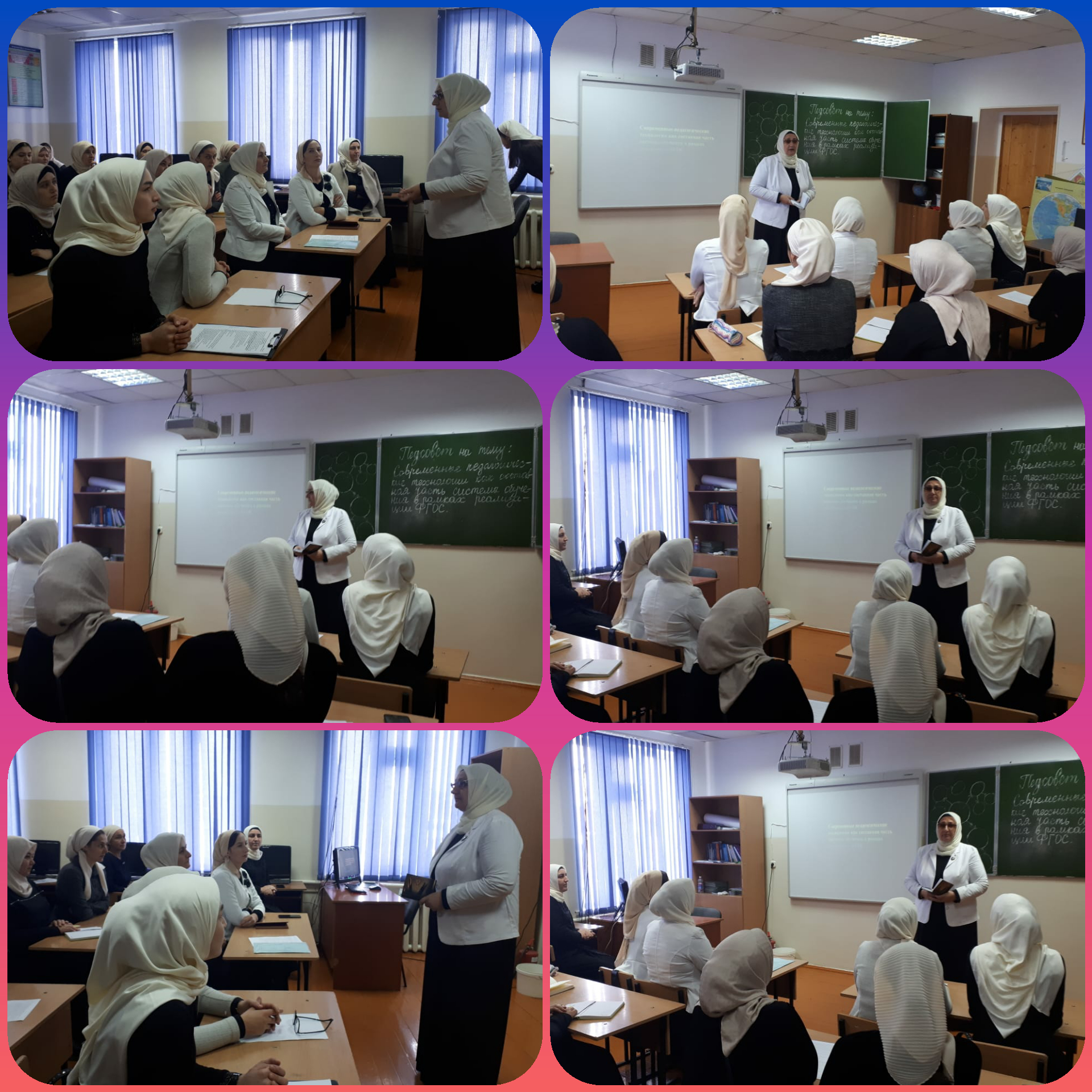 На педсовете коллеги рассказывали о тех педтехнологиях, которые используют в своей работе. Это и игровые технологии, применяемые на уроках в начальной школе, физический и химический эксперименты, кейс технология, технология критического мышления, технология создания учебных ситуаций и другие. Учителя составили профессиональный портрет современного учителя. В заключении педсовета педагоги посмотрели притчу «Наберись смелости- сделай попытку». Не надо бояться новых технологий, надо идти в ногу со временем!