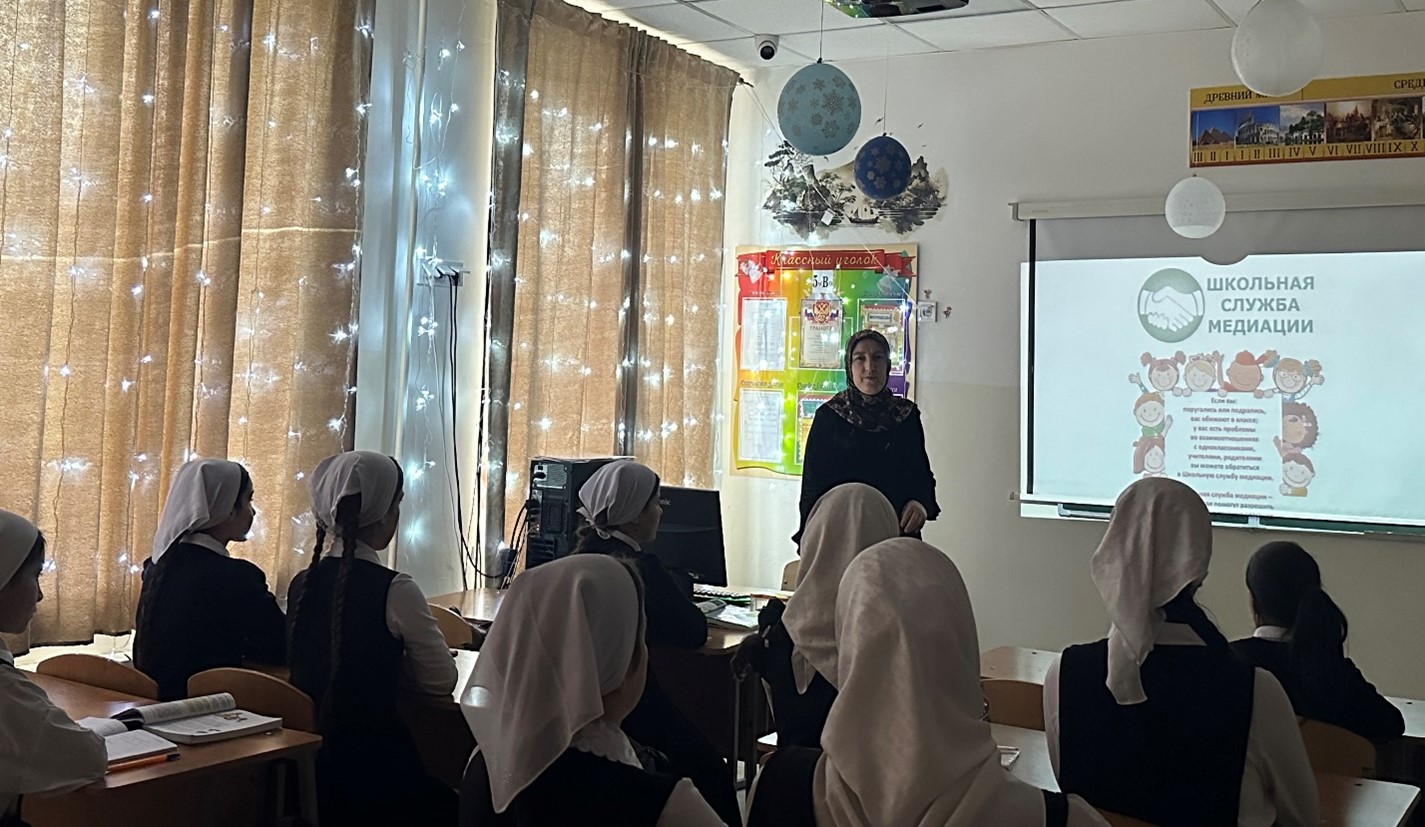 23.12.2024В рамках Дня правовой помощи в МБОУ «Ойсхарская основная школа» социальным педагогом Кунаевой К.У. была проведена беседа на тему: «Школьная служба медиации. Выход есть всегда.»