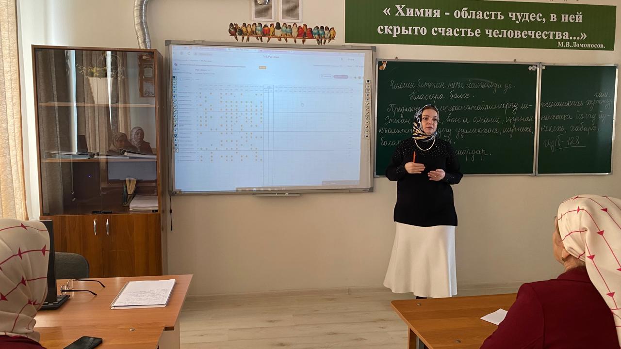 Далее Азиева Т.К. провела семинар для педагогических работников и подробно ответила на все вопросы присутствующих по критериям и системе оценивания результатов обучающихся, включая переход к средневзвешенному оцениванию текущей успеваемости, а также влияние её результатов на подведение итогов.