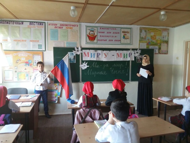 На уроках истории, обществознания, географии проведены беседы, рассказывающие об истории дня Мира на Чеченской земле, о проблемах терроризма и экстремизма в нашем обществе.
