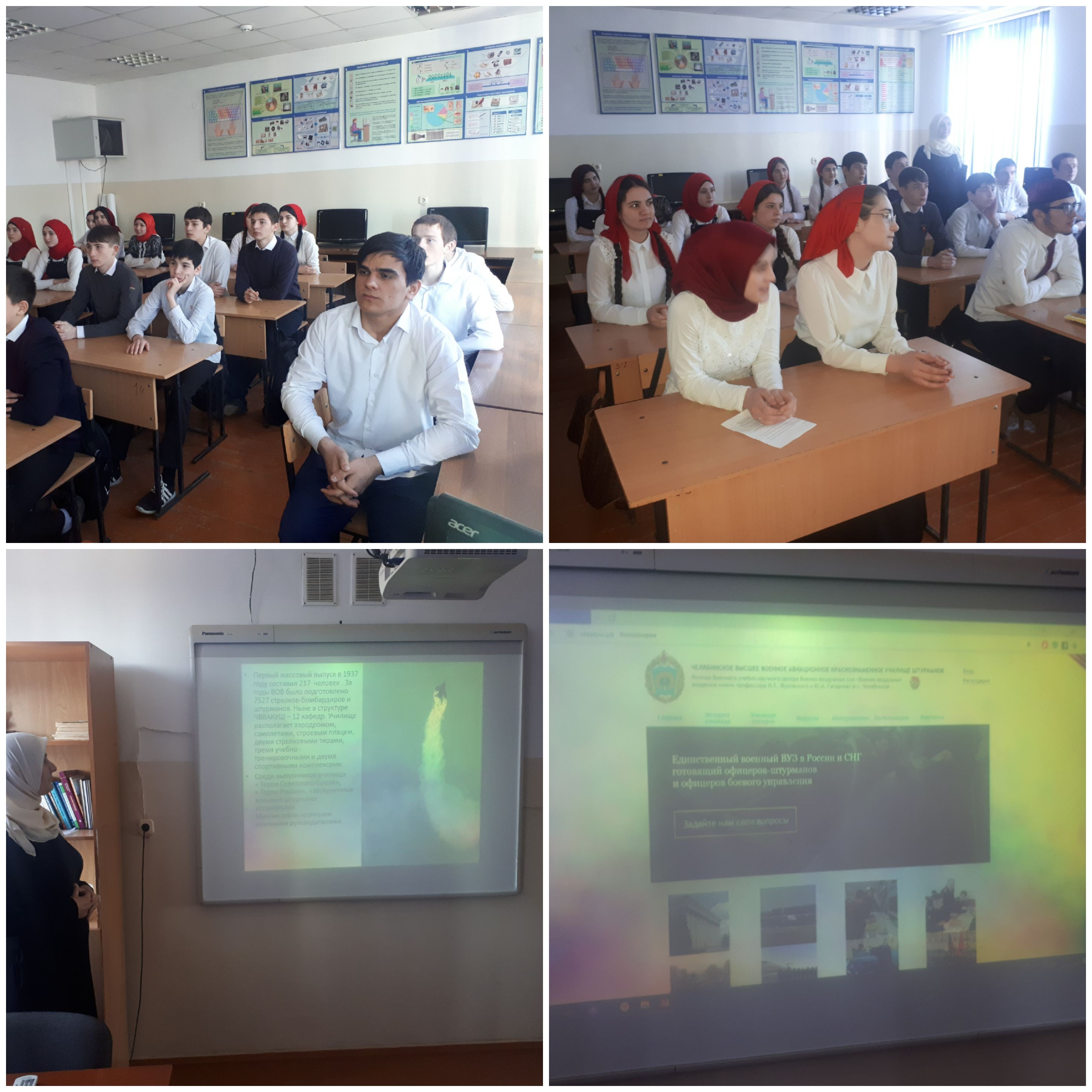 9 «а» класса Гагаева Т.М. познакомила учащихся с алгоритмом действия кандидатов, поступающих в ВУНЦ ВВС «ВВА» в г. Челябинск, с порядком проведения профессионального отбора кандидатов для зачисления в академию курсантами. Были озвучены общие положения по поступлению.