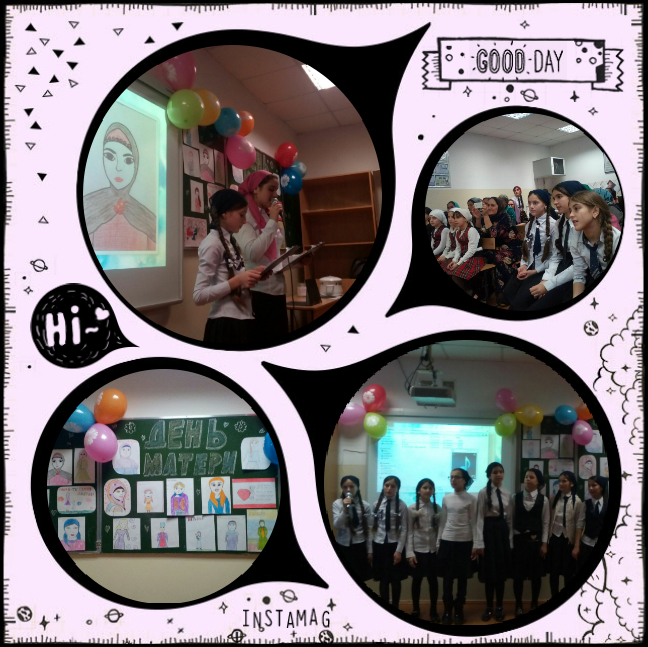 Каждый ученик усердно готовился к этому дню: учащиеся 5-ых классов заранее подготовили открытки для, 2 класс порадовал всех красивыми портретами, среди которых мелькали знакомые лица матерей. По школе были развешены красочные стенгазеты, придающие атмосферу уюта и тепла. Все собрались в кабинете, украшенном шарами и детскими рисунками. После того как родители устроились, ведущие: Элиханова Раяна и Джамалов Сулиман из 6 класса, вместе с Черухановой Айшат из 9 класса открыли праздник. Много теплых слов прозвучало от детей. Девочки из 4 класса спели песню «Маленький Тигренок», после чего ученики с разных классов прочитали стихотворения для мам. Следующими вышли ученицы 6 класса со всеми известной песней «Мама – первое слово!».Также и родители были задействованы в самом мероприятии: Джамалова Раиса прочитала стихотворение «Выбирал мальчишка розу», к которому заранее подготовилась. Директор школы Мадаева Мадина Абдул-Межидовна поздравила всех со знаменательным днем и наградила самых активных мам, за участие в жизни класса и школы, за усердную помощь классному руководителю и родительскому комитету. Были отмечены Элиханов Айшат, Элиханова Зуман, Абдулхасанова Айшат, Тимуркаева Милана, Джамалова Раиса, Мидаева Зоя, Асхабова Асет, Асватова Марет, Исраилова Пердоз, Абдулаева Майда и Джамалова Макка.После награждения родителям была представлена презентация и видео-ролик с домашними фотографиями учащихся вместе с родителями под приятную музыку. Так родители узнали побольше о других семьях. Заставила многих прослезиться инсценировка в сопровождении с песней «Мама, будь всегда со мною рядом», в исполнении учениц 8 класса.В завершении мероприятия ученики 4 класса спели песню «Мамина улыбка».Всем родителям очень понравился вечер, от которого у них останутся лишь хорошие впечатления.